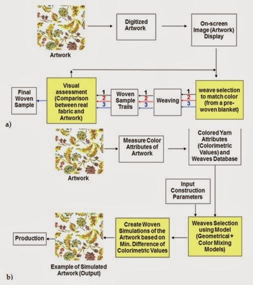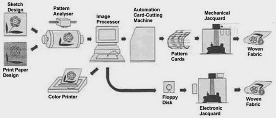With the help of computer system,we can analyze the woven sample digitized artwork instead of real fabric.We can see image disply on-screen than after making fabric. We can weave slection and sample matching on screen.